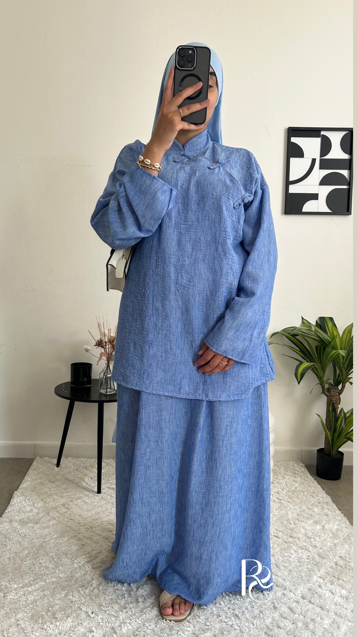 Cet ensemble deux pièces effet lin est une pièce élégante et confortable à adopter sans hésiter. Sa coupe droite et fluide offre un tombé parfait, idéal pour un look sobre et raffiné. Léger et agréable à porter, c’est le choix parfait pour les journées chaudes tout en restant chic et couverte.