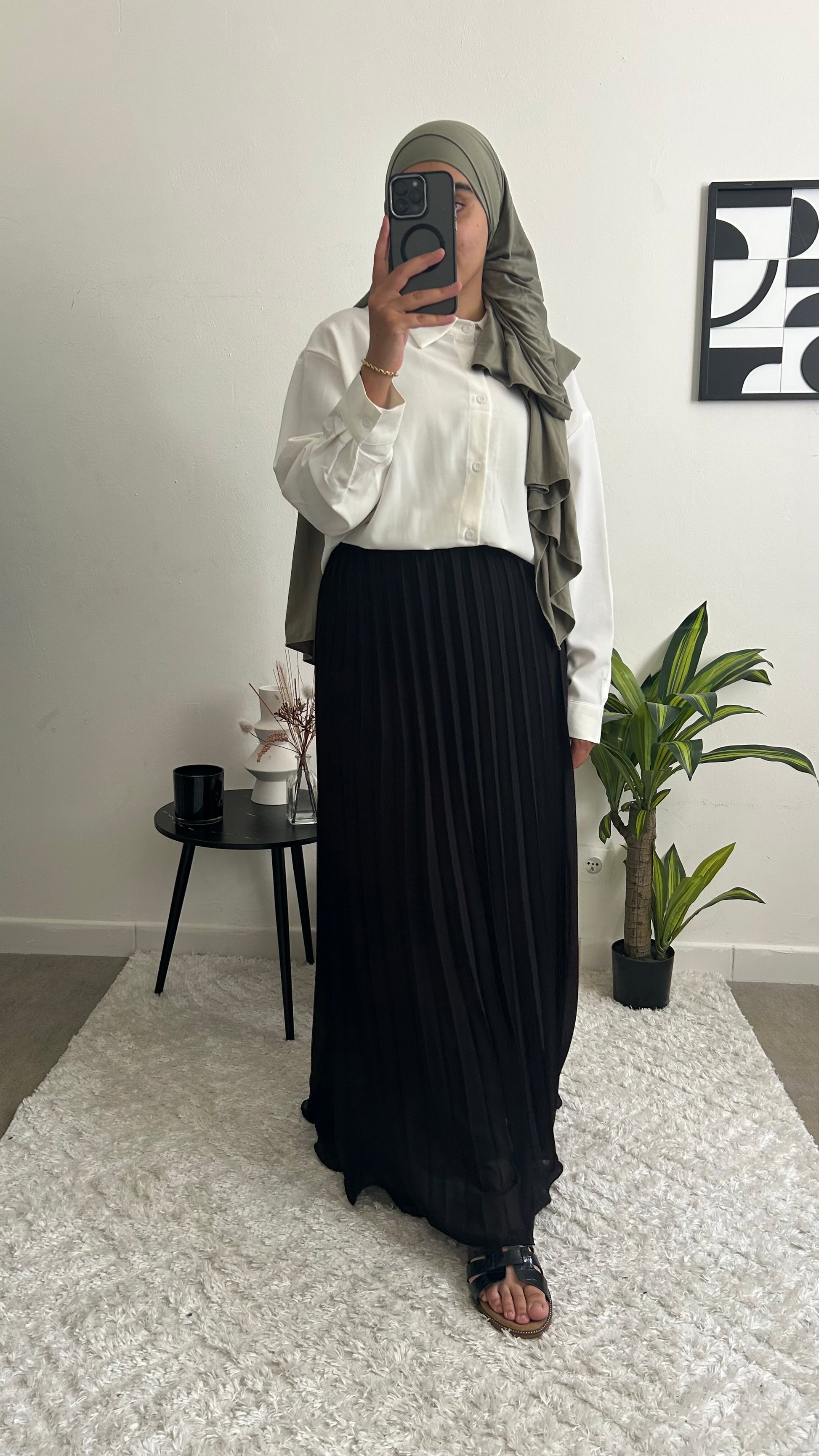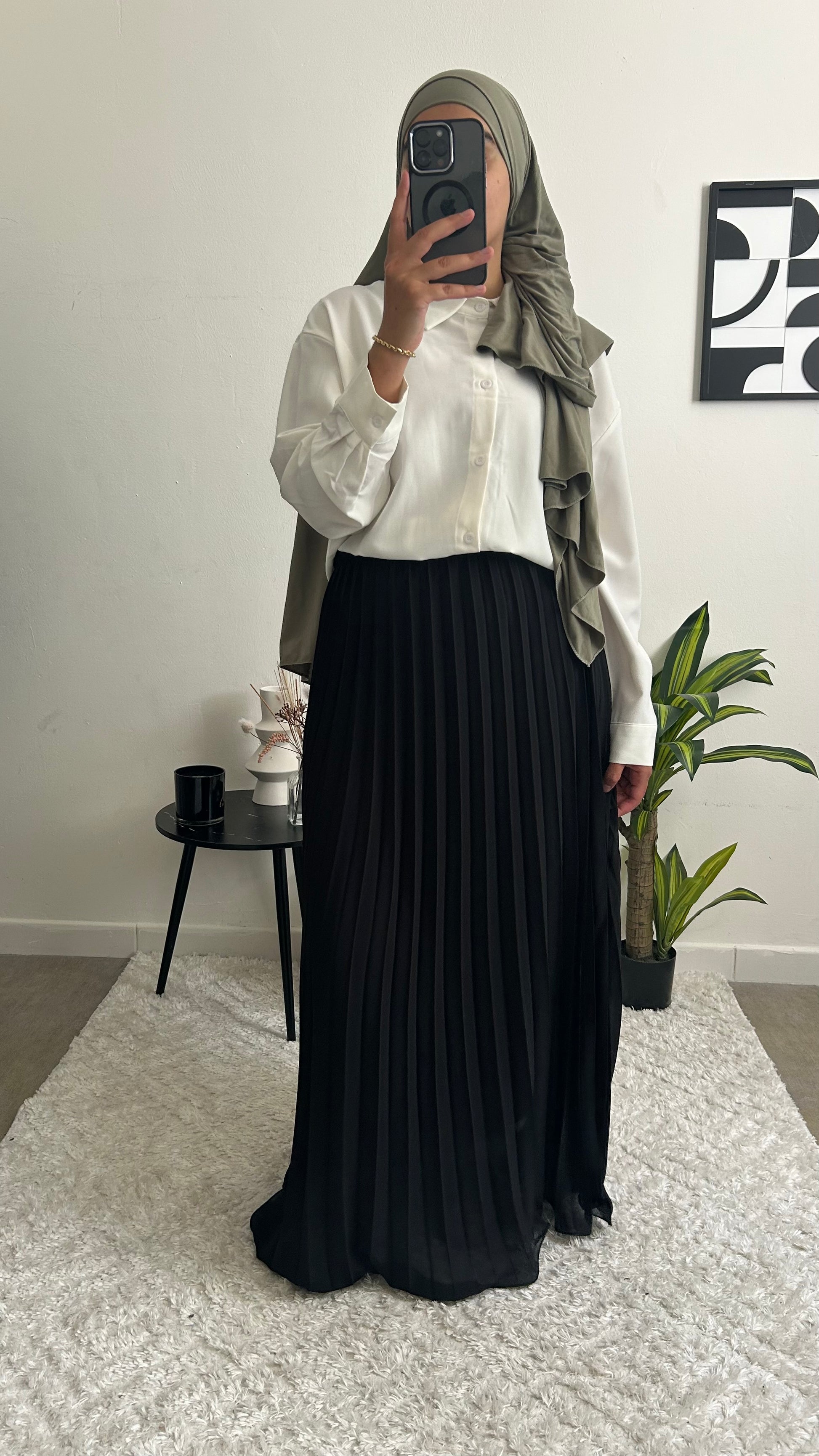 Découvrez notre jupe longue plissée , elle apporte une touche de chic à la tenue tout en restant dans la sobriété . Sa taille élastique s’adapte à toutes les morphologies , c’est un classique à avoir dans sa garde robe !