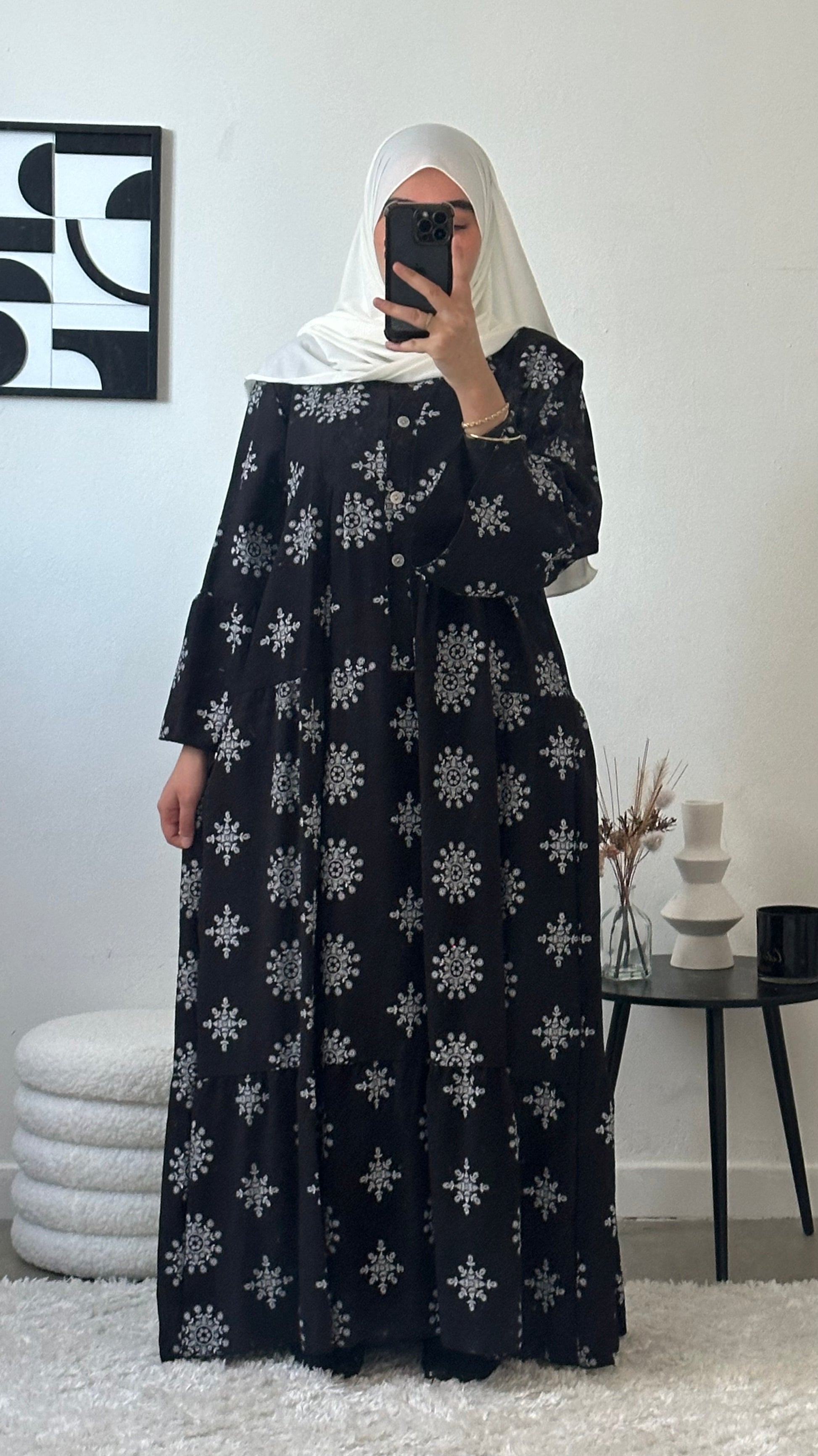 Découvrez notre robe a motif , une pièce incontournable pour une allure chic et décontractée. Confectionnée dans un tissu léger et fluide . Ces manches longues vous permettent de la porter peut importe la saison .
