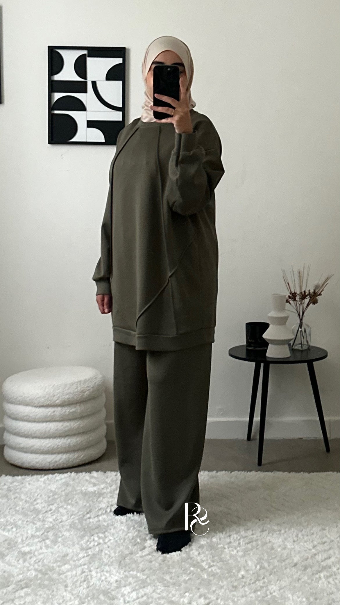 Optez pour le confort et l'élégance avec cet ensemble. Composé d'un haut ample et d'un pantalon large, il offre une coupe décontractée idéale pour un look chic au quotidien. Parfait pour les journées détendues tout en restant stylée.
